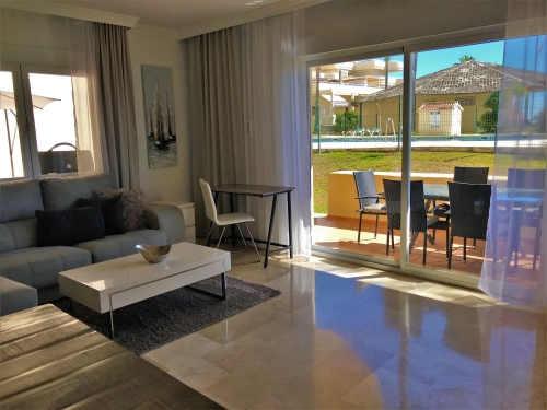 La urbanización "El Mirador de las Bermudas Beach está situado en la primera línea de playa entre la ciudad de Estepona y el pueblo de Sabinillas / Manilva. El complejo cuenta con patio privado de paddle, amplio jardín y piscina comunitaria derecho en la playa. Cada apartamento dispone de enormes terrazas con 100m ² y vistas inolvidables sobre la playa, el Peñón de Gibraltar y la costa Áfricas: una casa de vacaciones perfecto para el verano y el invierno! El complejo tiene acceso directo a la playa. A sólo 100 metros de distancia se encuentra un restaurante muy bueno. En pocos pasos se encuentra también un país-club con restaurante, spa y golf grandes - que ofrecen tarifas de descuento. En la puerta del pueblo de al lado se encuentra numerious tiendas, supermercados, bancos, restaurantes, bares de tapas, panadería y pastery. Todos los domingos aquí es uno de los mayores mercados de la región.