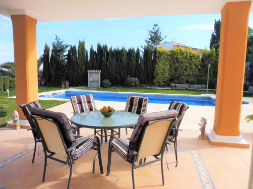 La villa está ubicada en una propiedad completamente cerrada y ofrece estacionamiento para varios autos, un gran jardín privado y una piscina privada de aproximadamente 10X5m con varias tumbonas y ducha.